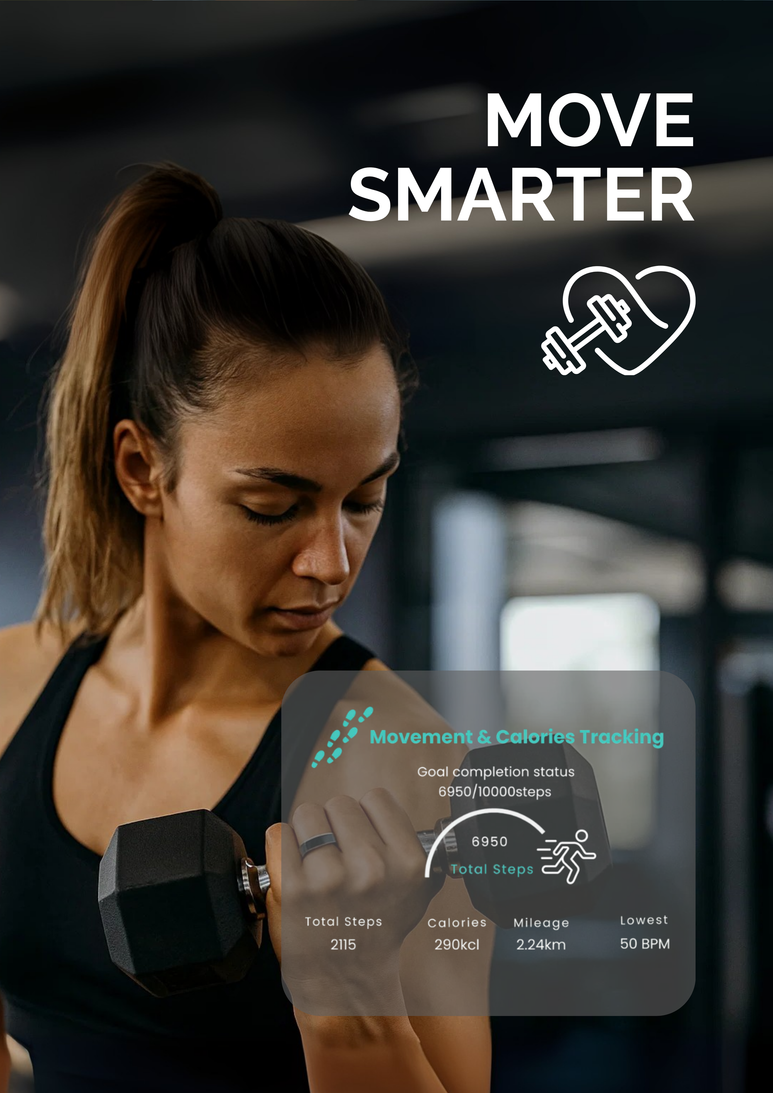 The Aura Smart Ring continuously tracks your heart rate, providing you with real-time insights into your heart’s activity. Monitor your heart rate variability (HRV) and resting heart rate, and observe any significant changes that may indicate stress, fatigue, or potential health concerns—all through the Smart Health app.